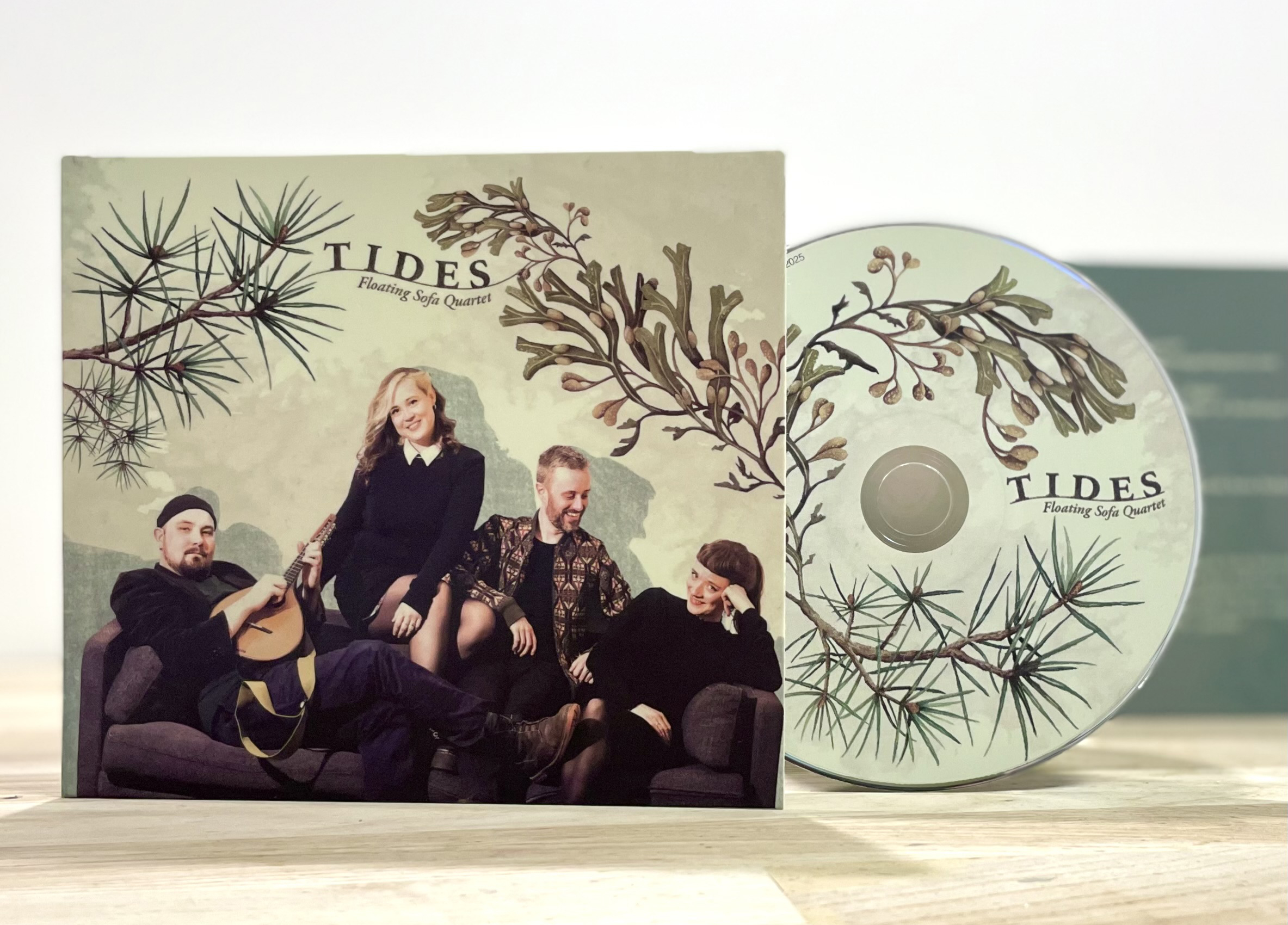 Illustration och grafisk formgivning till album och nothäfte.Till Floating Sofas Quartets 10-årsjubileum fick jag uppdraget att illustrera och formge bandets nya album och en bok med noter till alla deras låtar. Till projektet målade jag illustrationer av blåstång och tall för att representera bandets finsk/dansk/skånska ursprung,